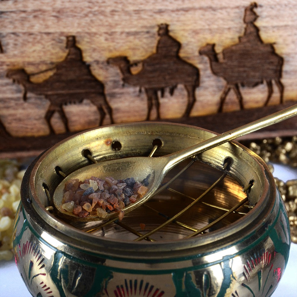 Pack Tesoros De Oriente - Oro Incienso Y Mirra - Incensario Pinzas Y Carbón - Ideal Regalo