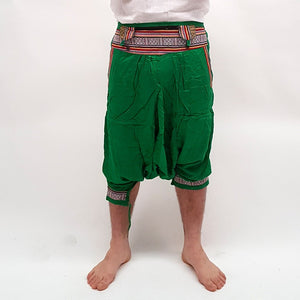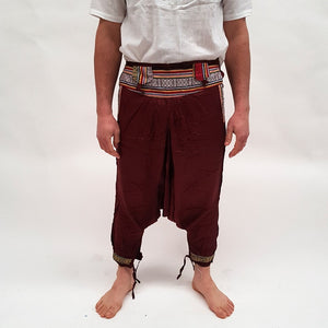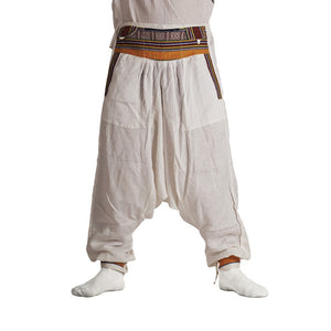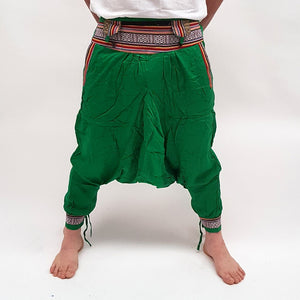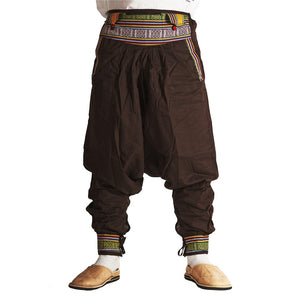 Pantalón Bombacho realizado artesanalmente con algodón y decorado con tapiz en el frontal, bolsillos y piernas.
