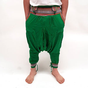 Nuevo, Pantalón Bombacho realizado artesanalmente con algodón y decorado con tapiz en el frontal, bolsillos y piernas.