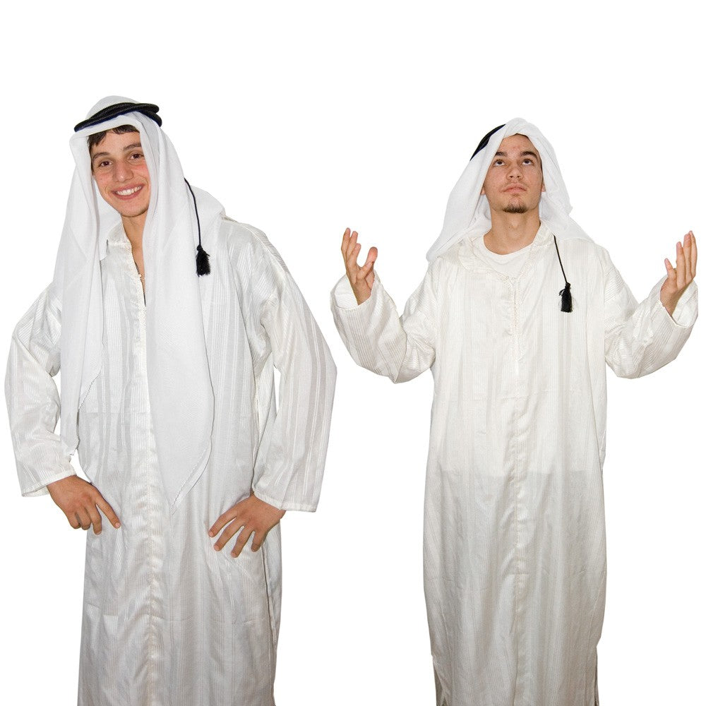 Consta del pañuelo y el aro negro para fijarlo. La chilaba no se incluye.