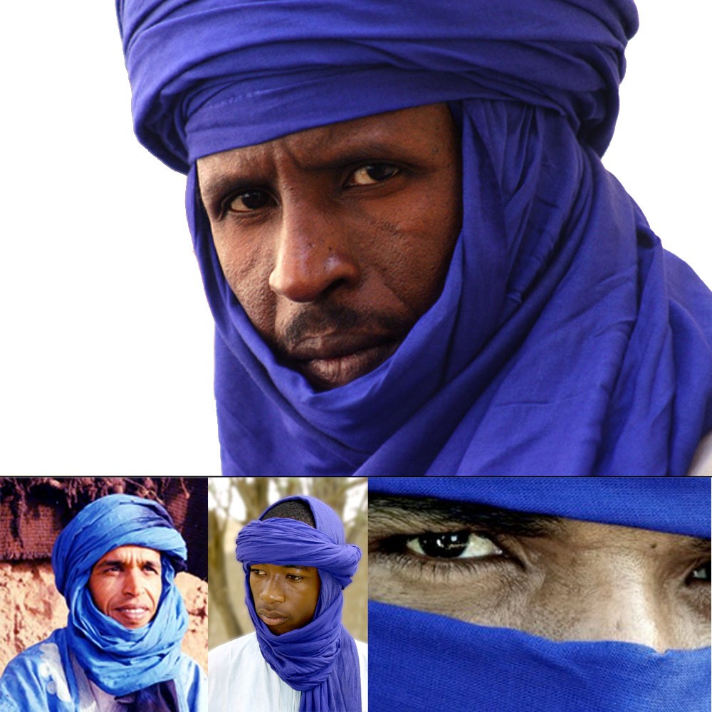 Pañuelo Tuareg Algodón - Azul Marino en 2 Tonos - Gran Calidad- 300 cm