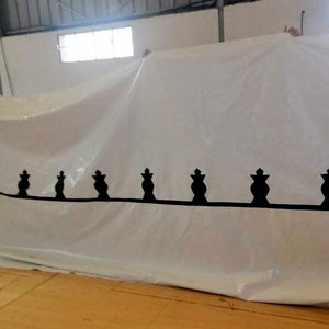 Consta de 1 sola pieza de PVC a una cara y de tela decorativa árabe a la otra cara.