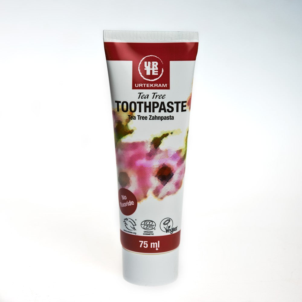 Pasta de dientes de arbol del té Urtekram 75 ml bio. Dentífrico de Árbol de Té a base de tiza y otros ingredientes activos de la naturaleza.