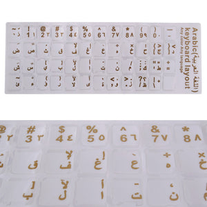 Pegatinas de teclado árabe para utilizar en cualquier teclado.Escriba árabe con su ordenador convencional (es necesario tener instalado el idioma en su ordenador).Las pegatinas de las teclas son transparentes e impresas en dorado. Gracias a su