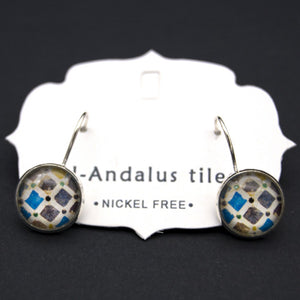 Pendientes cortos estilo con gancho o sujeción a presión. Pendientes para mujer inspirados en los azulejos andalusies inspirados en la Alhambra granadina.