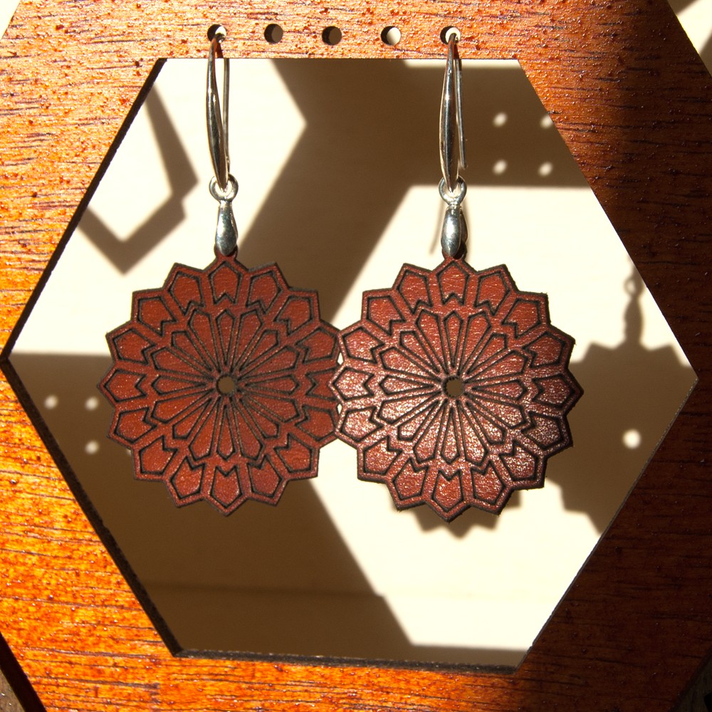 Pendientes de Cuero Grabado - Engarce Plata - Modelo Generalife