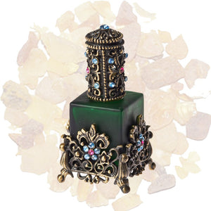 Perfume de ámbar presentado en un bonito y elegante frasco.