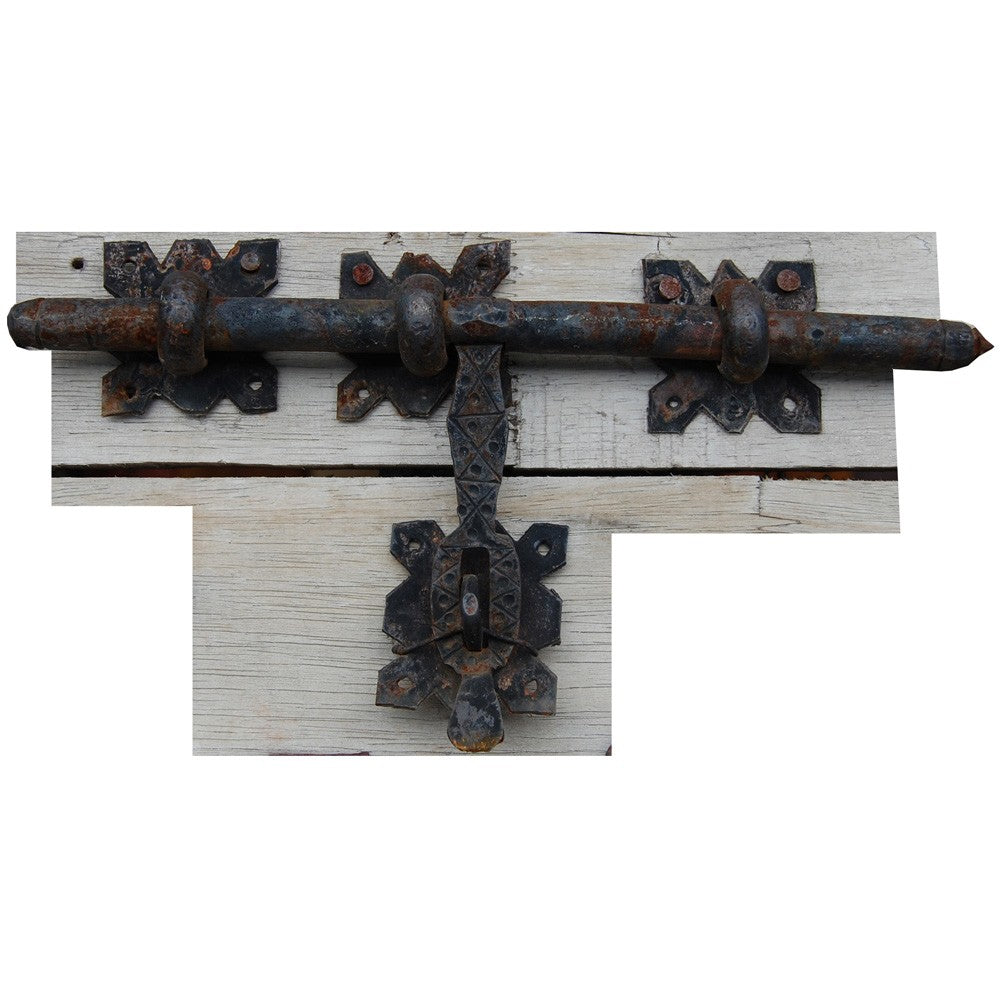Pestillo de forja realizado artesanalmente.Ideal para restauración de puertas o armarios.Gran calidad y acabado.Se ancla con tornillos o clavos. Medidas: 28 x 13 cm.