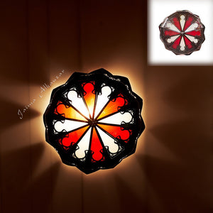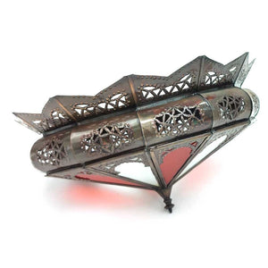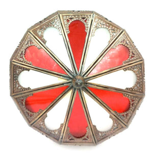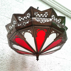 Plafón Lampara Rojo de Techo Chapa Calada y Cristal Decoración Marroquí Estilo Andalusí Modelo Al'aqhuan