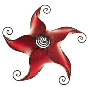 Plafón de techo realizado artesanalmente con piel y pintado a mano con henna, En Jaima Alkauzar podrás Comprar Online Lámpara Sol Plafón Espiral Forja al mejor precio.