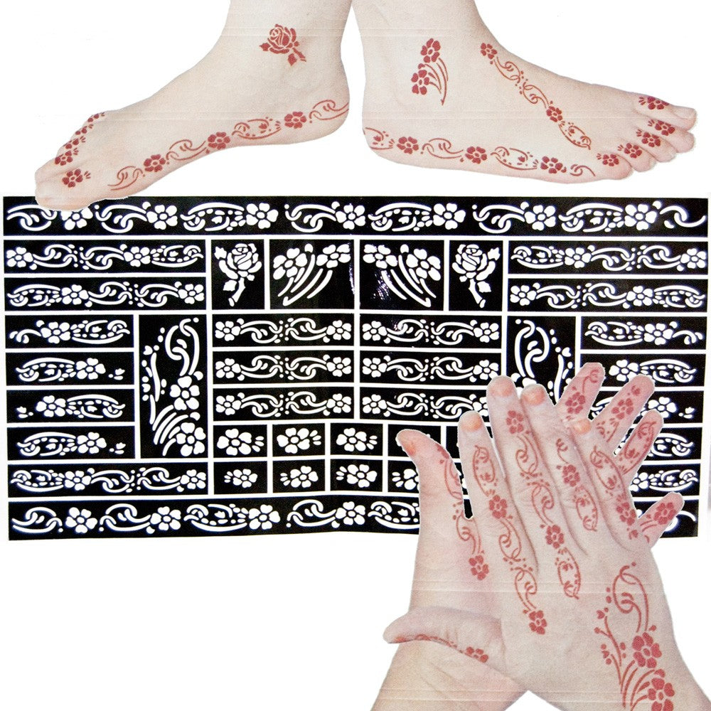 Plantilla Adhesiva Tatuajes Henna - Pies y Manos - 1 Solo Uso