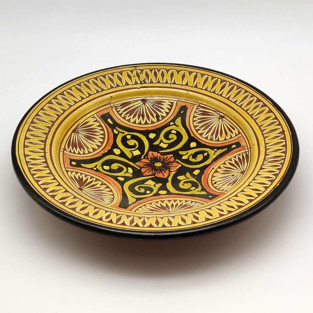 Plato para decoración árabe de cerámica esmaltada y labrada realizado artesanalmente para comprar Online al mejor precio. Cerámica pintada y labrada a mano de Safi, Marruecos. Una ciudad conocida por sus alfareros y cerámicas únicas en el mundo.