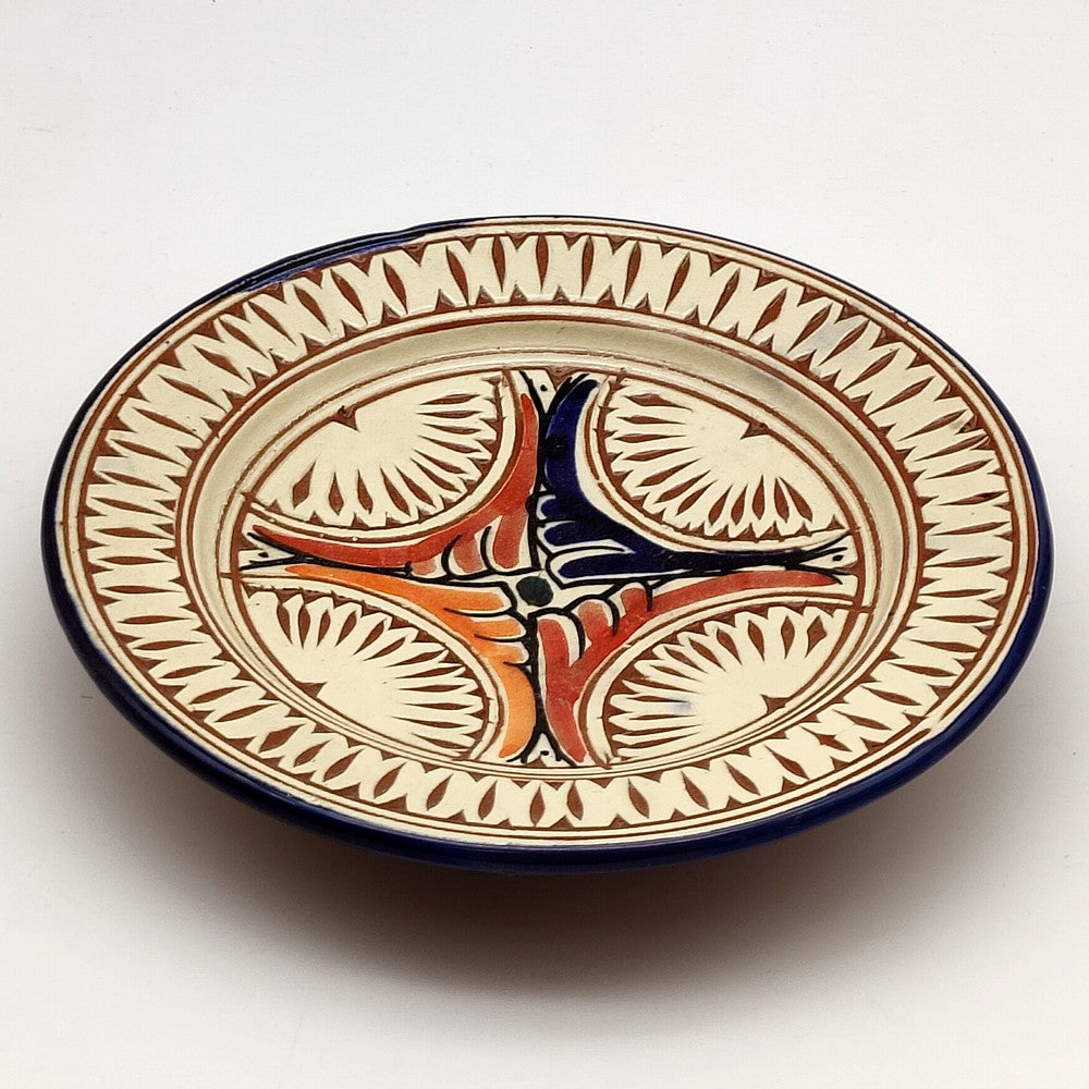 Plato para decoración árabe de cerámica esmaltada y labrada realizado artesanalmente para comprar Online al mejor precio. Cerámica pintada y labrada a mano de Safi, Marruecos. Una ciudad conocida por sus alfareros y cerámicas únicas en el mundo.