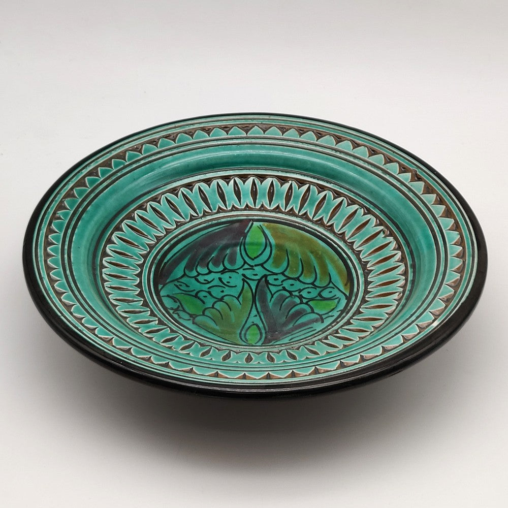 Plato Cerámica Asfi Labrada y Esmaltada - Pintada a Mano - Verde Esmeralda - Modelo Nahtun