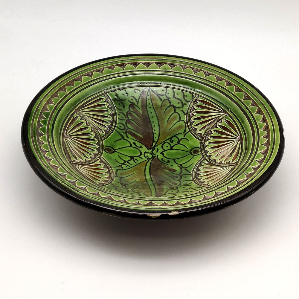 Plato Cerámica Asfi Labrada y Esmaltada - Pintada a Mano - Verde - Modelo Nahtun