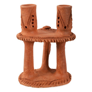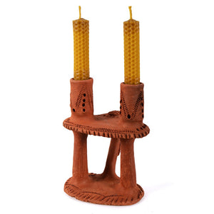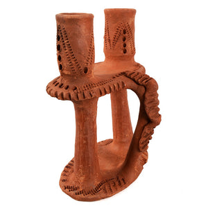 Porta Velas Barro - Para 2 Velas - Elaborado Y Decorado A Mano - 20 cm