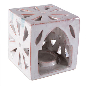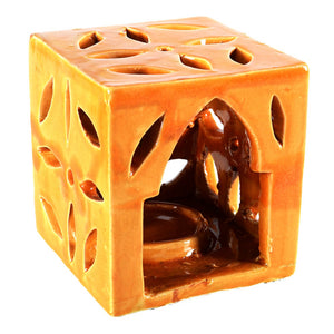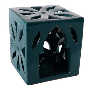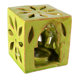Porta Velas Cerámica - Cubo Floral - Esmaltado - Varios Colores - 10 cm