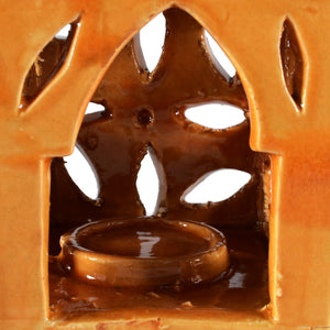 Portavelas de cerámica esmaltado, tiene una paqueña base para poner la vela.
