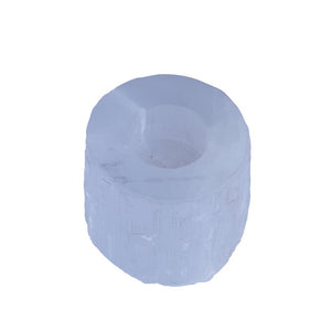 Porta Velas Cilindro Selenita - Mineral Bruto - Feng Shui