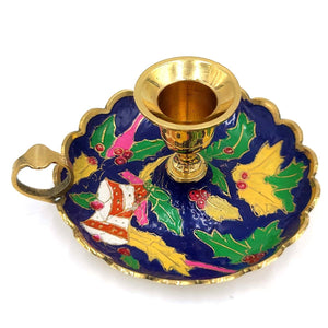 Porta velas Palmatoria Candelabro Bronce Pintado Estilo Noel