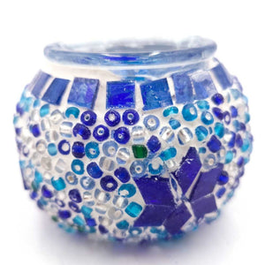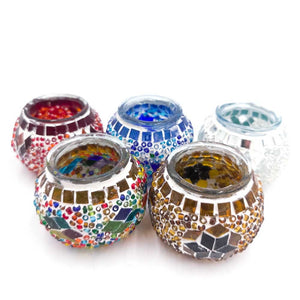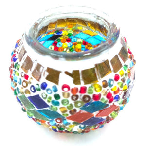Portavelas turco mini, Elaborado artesanalmente con cristal en mosaico. Este porta velas artesanal para la decoración turca otomana.