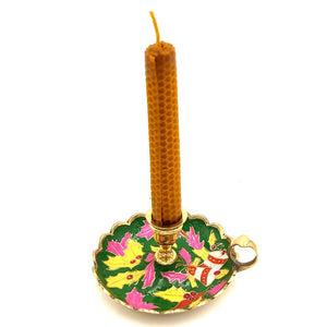 Palmatoria realizada en bronce y decorada con motivos florales en colores.Muy bonita y bien acabada.Dispone de anilla para una mejor sujeción.Medidas:Diámetro 12 cmAlto: 5 cmBoca: 3 cm