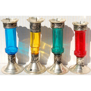 Portavelas de cristal con alpaca. Dos tamaños. Varios colores.