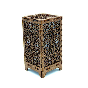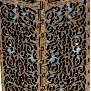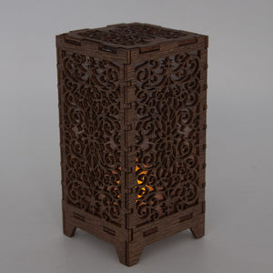 Portavelas Madera Candelabro Farol Mini Diseño Calado Floral - Corte y Grabado Láser - Led
