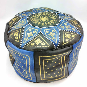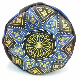 Puff Árabe Cuero 100% - Color Azul Artesanía Marroquí - Modelo Aswad Azrak