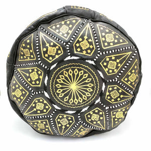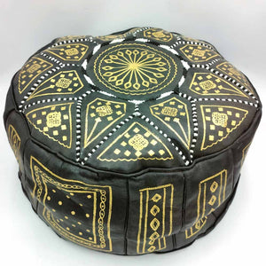 Puff Árabe Cuero 100% - Color Negro Artesanía Marroquí - Modelo Aswad kaamil