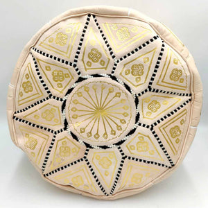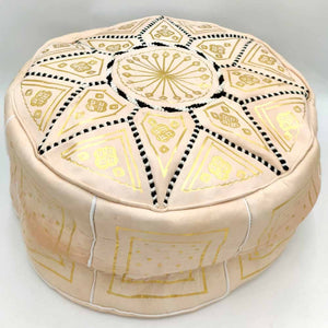 Puff Árabe Cuero 100% - Color Piel Natural Artesanía Marroquí - Modelo Laun Abiadun