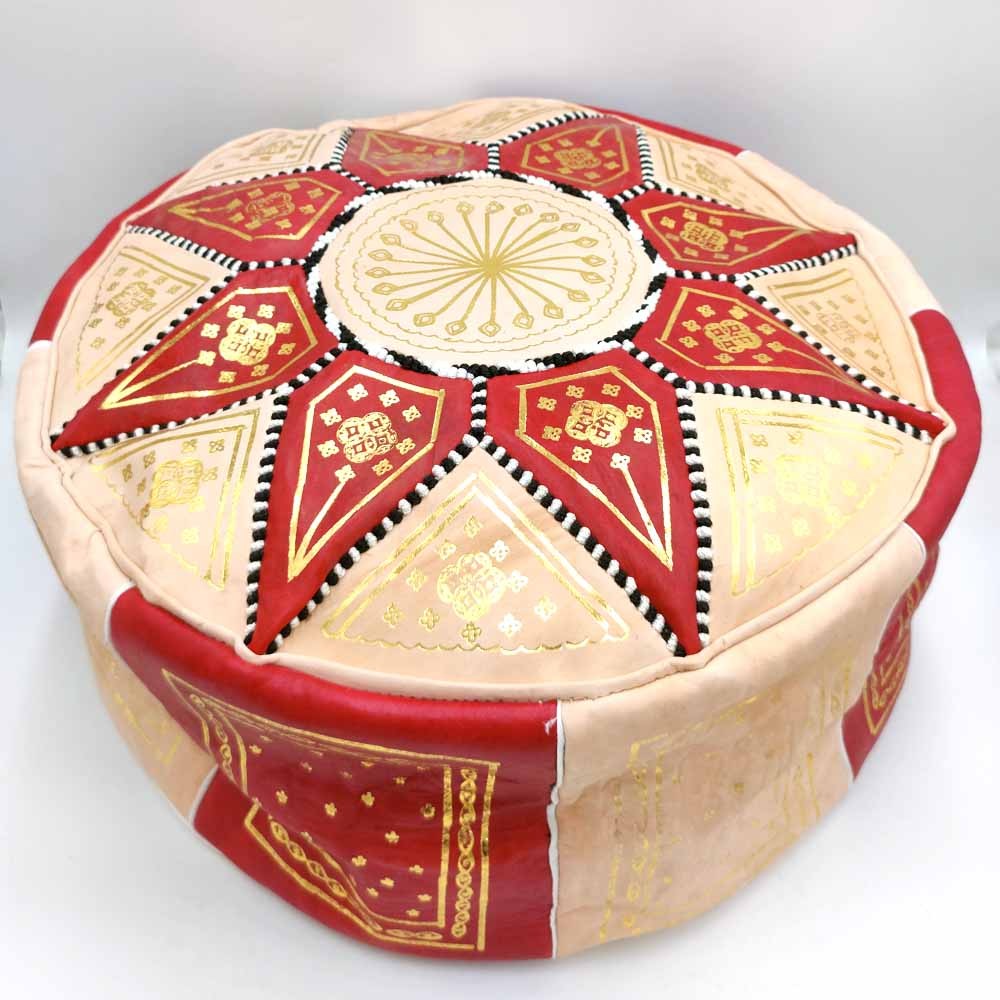 Puff Árabe Cuero 100% - Color Rojo Artesanía Marroquí - Modelo Laun Ahmar