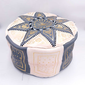 Puff Árabe Cuero 100% - Gris Artesanía Marroquí - Modelo Laun Ramadi