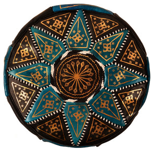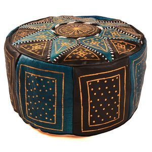 Puff Bicolor Piel - Diseño Mosáico Arabe - Artesano - Modelo Aswad
