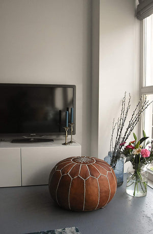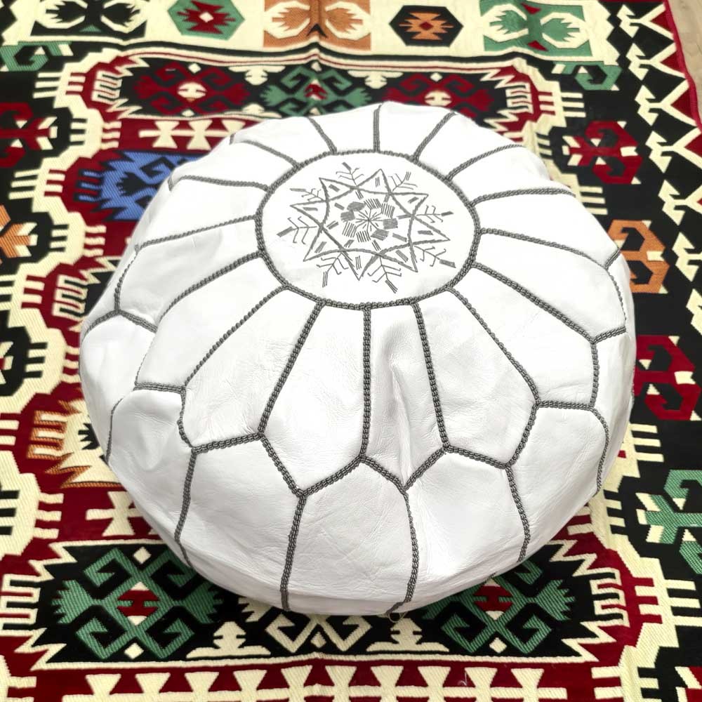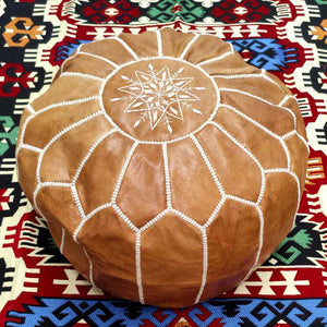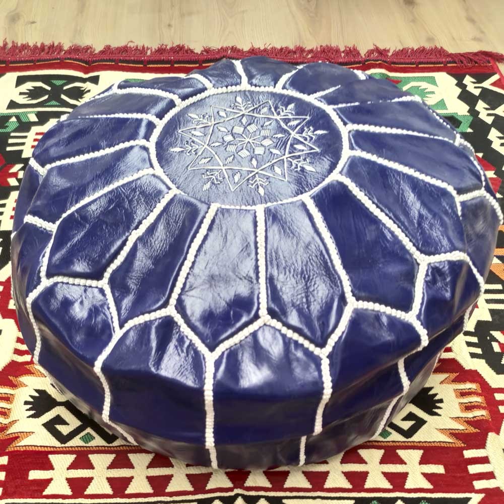 Puff Marroquí 100 % Cuero - Cojin de Suelo Hecho a mano - Sin Relleno - Modelo Nafkha