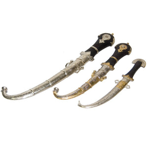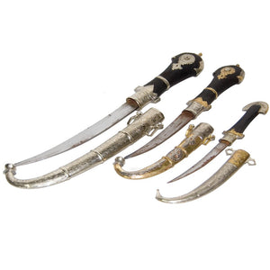 Juego de puñales arabes artesanales realizados en alpaca y latón grabada.