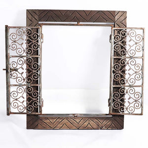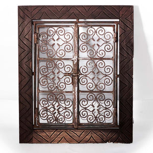 Ventana con reja realizada artesanalmente. Elaborado en madera grabada. Disponible en dos tamaños.
