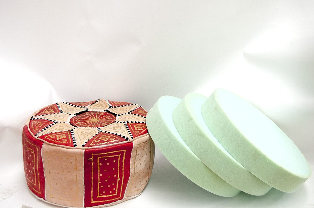 Relleno Especial y muy establede de espuma dura, de alta densidad, muy comodo, realizado a medida para los puff árabes de Jaima Alkauzar.