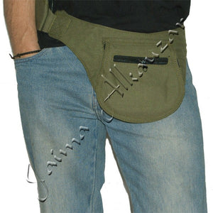 Riñonera de tela de algodón, realizada artesanalmente.Dispone de 4 bolsillos con cierre de cremallera y 2 bolsillos abiertos debajo de la tapa frontal con cierre de velcro.Correa extensible con cierre de velcro.Disponible en varios
