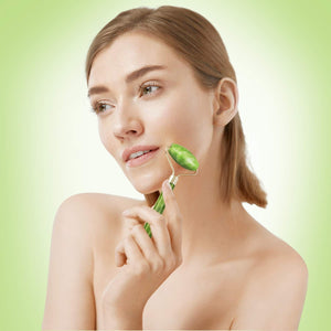 Rodillo de Jade - belleza facial para mejorar la apariencia de tu piel, Antiarrugas, relajante, masajeador 100% PIEDRA Natural de Jade