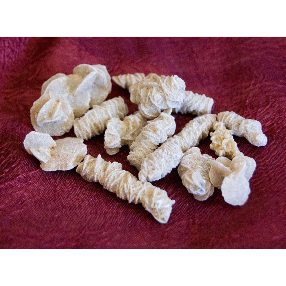 La rosa del desierto es una roca sedimentaria evaporítica formada en los desiertos, de ahí su nombre, cuando se forman diversas capas de yeso, agua y arena.