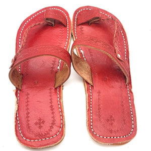 Sandalia para mujer roja, realizada artesanalmente en Marruecos con cuero natural. Muy fresquita y comoda para el verano o para andar por casa. Para comprar online al mejor precio.