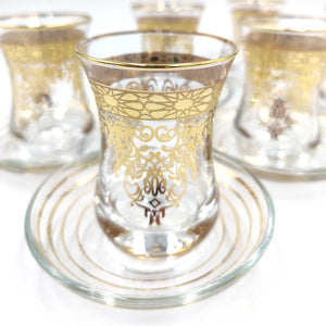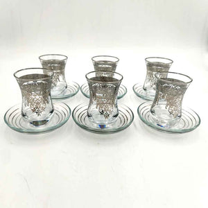 Set Juego 6 Vasos de Té Turco con Platitos - Artesanía Turca - Decoración Árabe - Modelo Fiddati