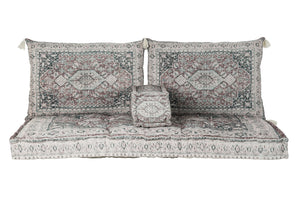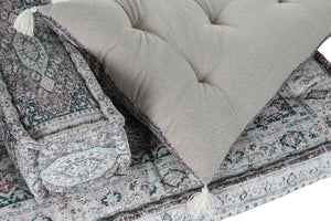 Descubre el confort y estilo del sillón set de 4 piezas de algodón desgastado verde con relleno incluido. Ideal para ambientes tipo tarba bajo árabe. Dimensiones: 155x76x65 cm. Incluye el relleno.