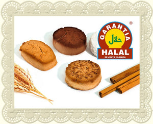 Surtido de manteacados y polvorones 100% vegetal del marca andaluza FUENTES con certificado del Instituto Halal.