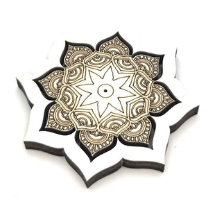 Tablillas para quemar varillas de incienso aromáticas . Decorado con diseños Mandala, motivos árabes, moriscos, andalusí. Cortada y grabada con maquina laser.