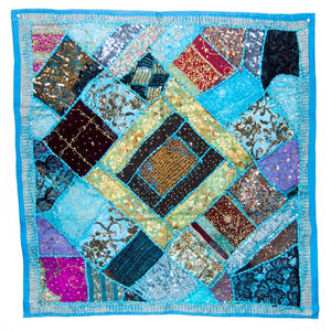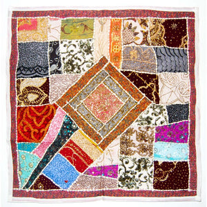 Tapete decorativo de gran calidad , realizado artesanalmente, se puede usar en una mesa o colgado de la pared, diseño oriental con espejitos y abalorios.Muy decorativo.Medidas: 100 x 100 cm.