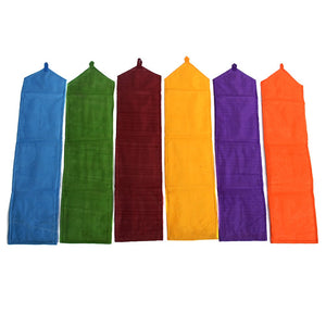 Tapete guardacartas decorativo para puertas y entradas. Dispone de 3 bolsillos. Realizado artesanalmente en algodón con motivos y decoraciones orientales. Disponible en varios colores.