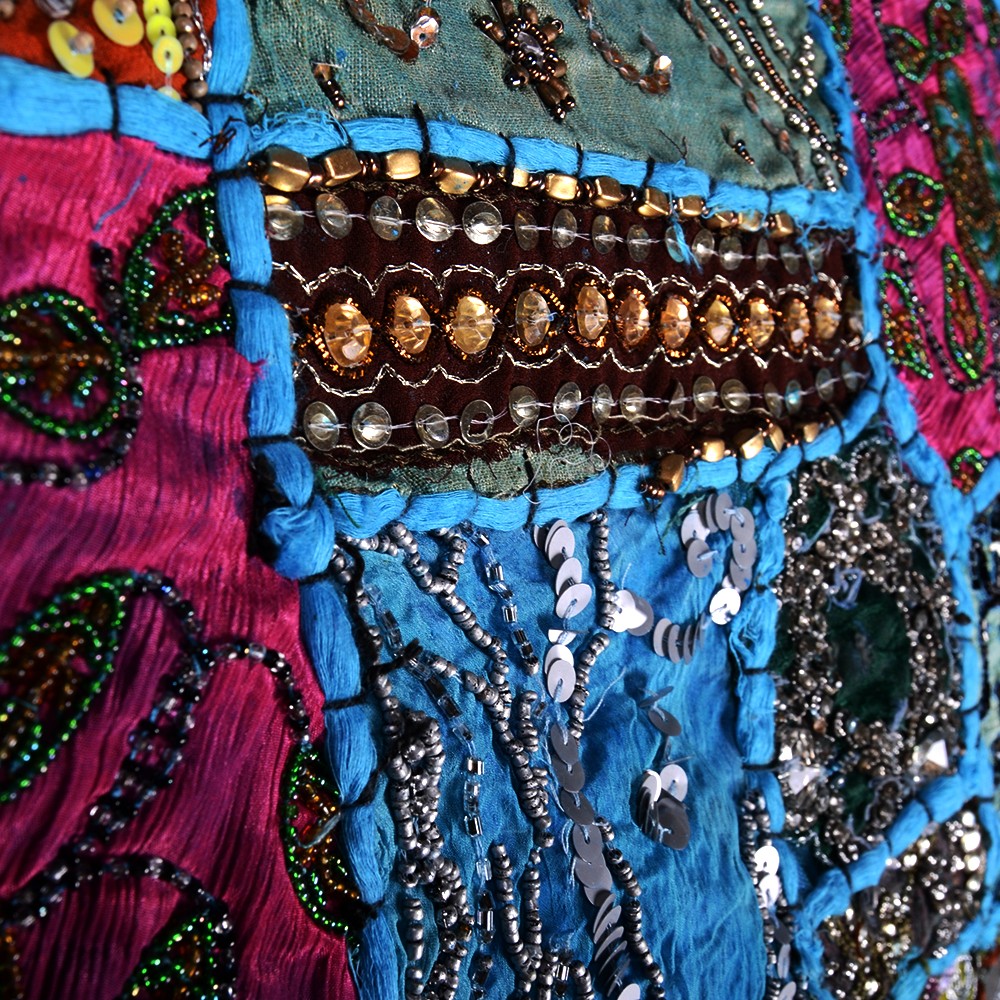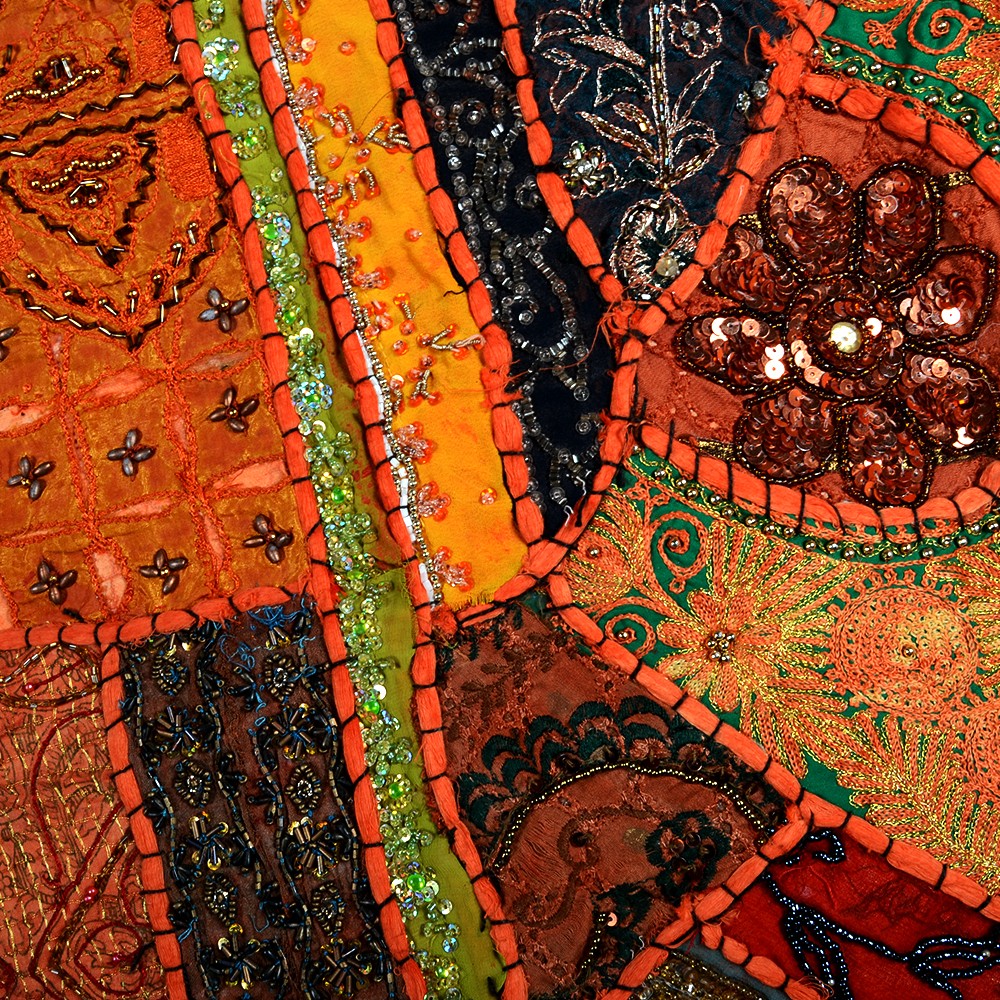 Tapete pathwork grueso de gran calidad realizado y tintado artesanalmente con tintes naturales.