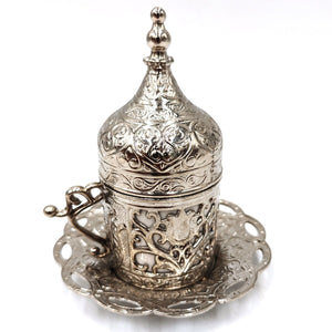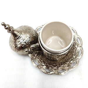 Taza y Platito Té o Café Turco - Plateado - Modelo Antalya
